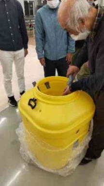 10月10日、「MIYASHIRO エコ☆スターズ」のメンバー15名が10月24日に開催されるイベント【エコ☆スタLet's 地産地show cooking】時に燃料として使用するバイオガス準備のため、宮代町蛭田農園殿に設置したメタン発酵装置に原料用の生ごみ投入を行いました。