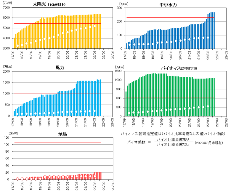 棒グラフは資源エネルギー庁 事業計画認定の公表(2022年10月28日公開データ)よりREPAにて作成
