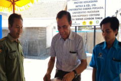 その後セリウェサイトを調査し現地の方々と打合せをし、建屋・井戸の位置、海藻加工工場レイアウトなど協議しました。またロンボク島のマラタム国立大学を訪問し付加価値のある海藻加工の協同研究、ロンボク州政府を訪問