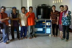 ロンボク島セリウェ漁村の海藻加工工場では採れた海藻を乾燥させる台を、網から竹敷板に変更し生産性・品質を向上させるようにしました。また工場で太陽光・風力を電源とした浄水器で製造される飲料水が地元民に提供出来るようになりました。工場は着々と地域に根差したものとなってきました。