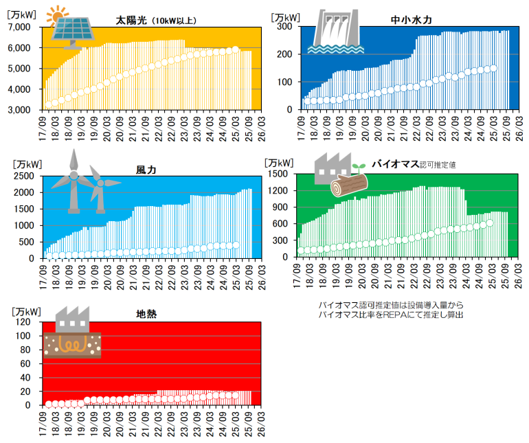 棒グラフは資源エネルギー庁 事業計画認定の公表(2025年11月14日公開データ)よりREPAにて作成