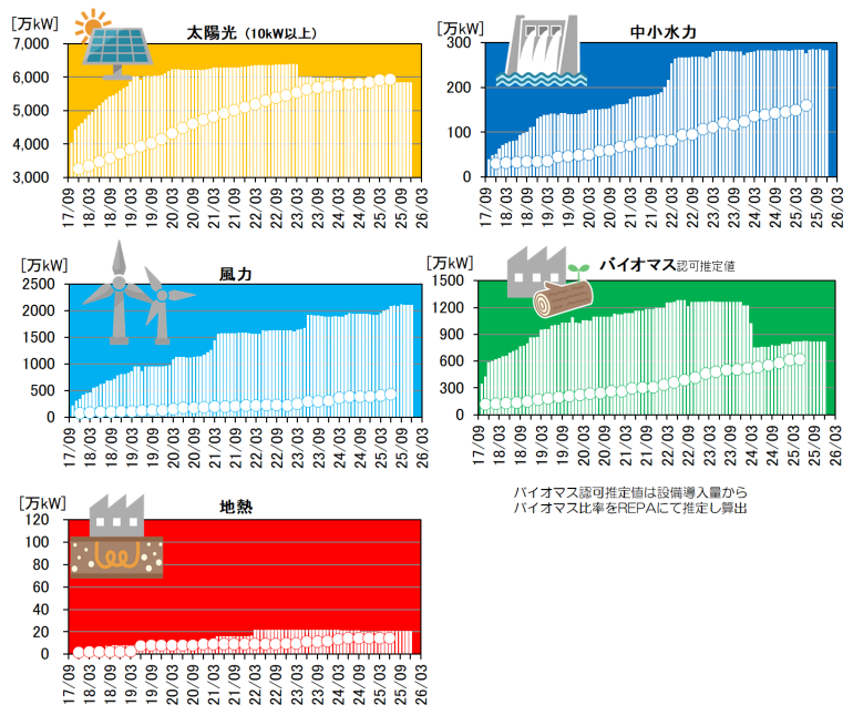 棒グラフは資源エネルギー庁 事業計画認定の公表(2026年1月16日公開データ)よりREPAにて作成